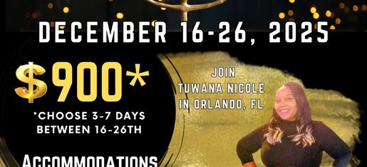 Prepare to travel to Orlando, FL for a three day one on one session with Tuwana Nicole. You are sure to leave with a whole new outlook on life and equipped to face whatever life throws your way.